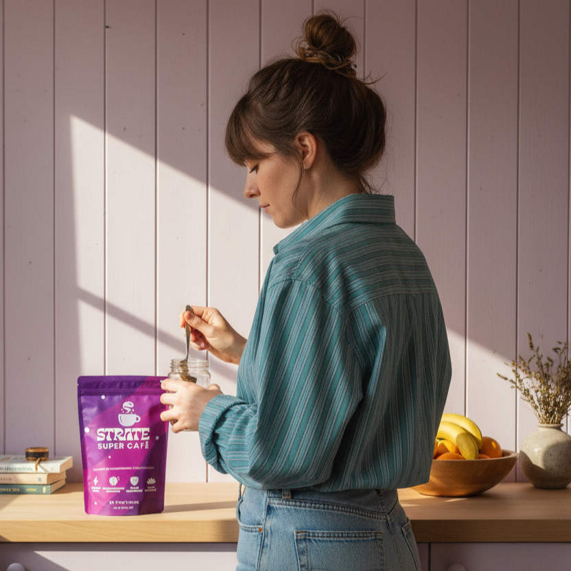 Une seule dose de Strate transformera votre café, vos céréales, votre avoine, votre yaourt ou votre smoothie en une expérience pour le corps et l'esprit.