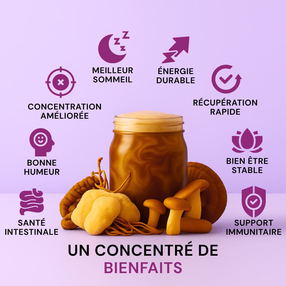 Les effets les plus profonds — sur la concentration, la résistance au stress ou la digestion — apparaissent généralement après quelques jours à quelques semaines, grâce à l’action progressive des champignons adaptogènes.